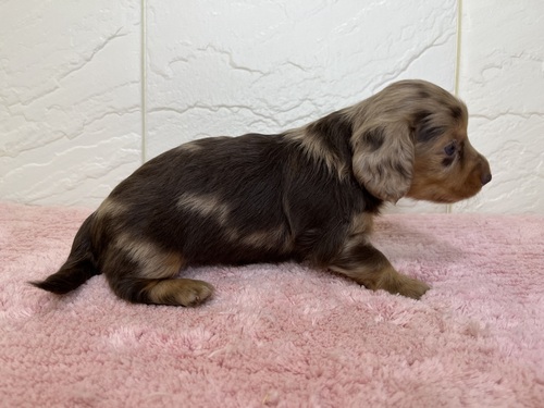 | 紹介文 | カニヘンダックスフンド(チョコダップル)の女の子です♪ 成犬予想体重:3kg前後 |
