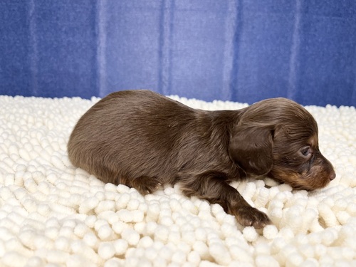 | 紹介文 | カニヘンダックスフンド(チョコタン)の女の子です♪ 成犬予想体重:3kg前後 |