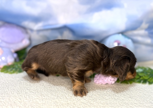 | 紹介文 | カニヘンダックスフンド(チョコタン)女の子です♪ 成犬予想体重:3kg前後 |