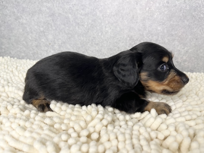 | 紹介文 | カニヘンダックスフンド(ブラックタン)の男の子です♪ 成犬予想体重:3kg前後 |
