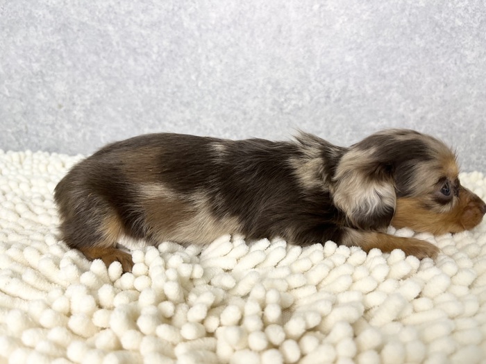 | 紹介文 | カニヘンダックスフンド(チョコダップル)の女の子です♪ 成犬予想体重:3kg前後 |