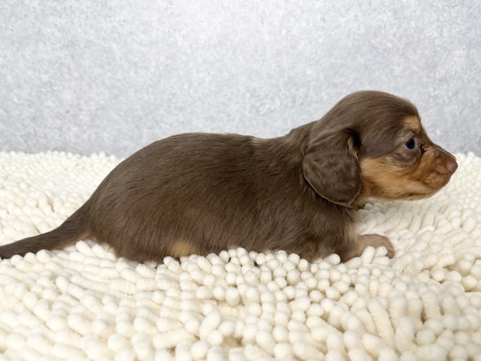 | 紹介文 | カニヘンダックスフンド(チョコタン)の女の子です♪ 成犬予想体重:3kg前後 |