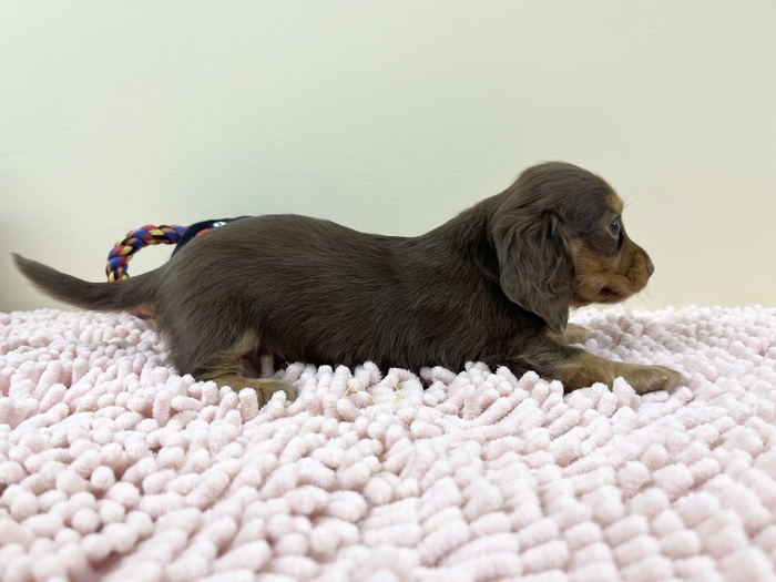 | 紹介文 | カニヘンダックスフンド(チョコタン)の女の子です♪ 成犬予想体重:3kg前後 |
