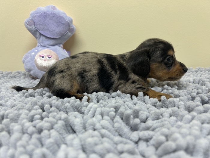 | 紹介文 | カニヘンダックスフンド(シルバーダップル)の男の子です♪ 成犬予想体重:3kg前後 |