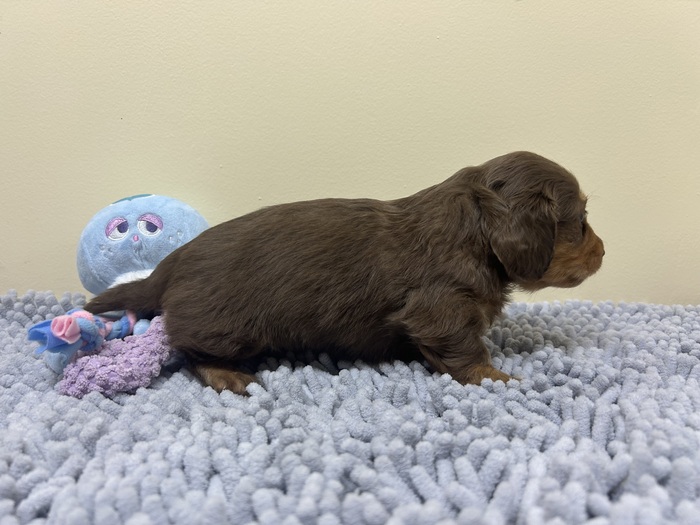 | 紹介文 | カニヘンダックスフンド(チョコタン)の男の子です♪ 成犬予想体重:3kg前後 |